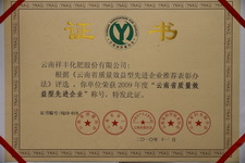 2009年度云南省質(zhì)量效益先進(jìn)企業(yè)